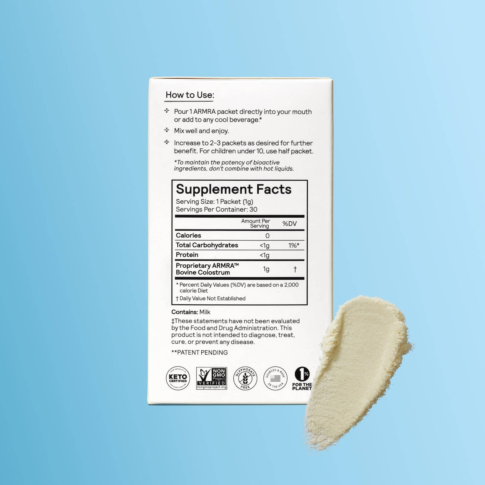 Unflavored:Proprietary ARMRA Colostrum™ Concentrate (Bovine). Contains: Milk.